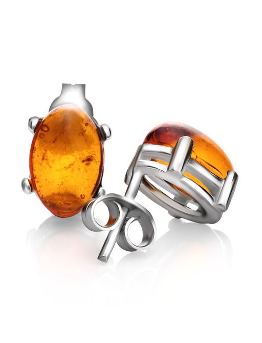 Элегантные серьги-гвоздики с коньячным янтарём Ностальгия