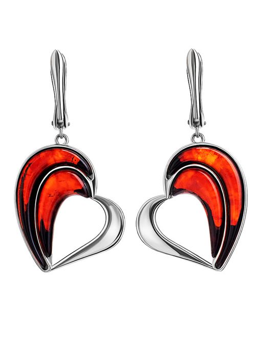 Стильные серебряные серьги с натуральным тёмно-вишнёвым янтарём Санрайз