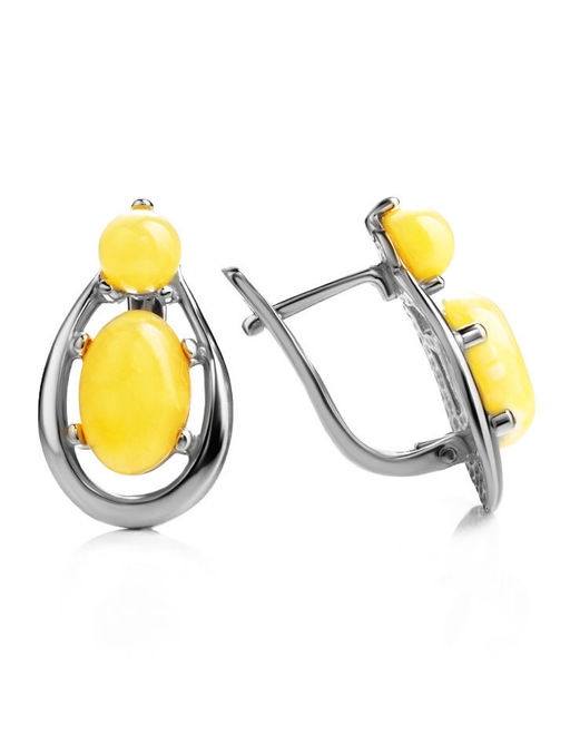 Серьги из натурального яркого медового янтаря в серебре Пруссия