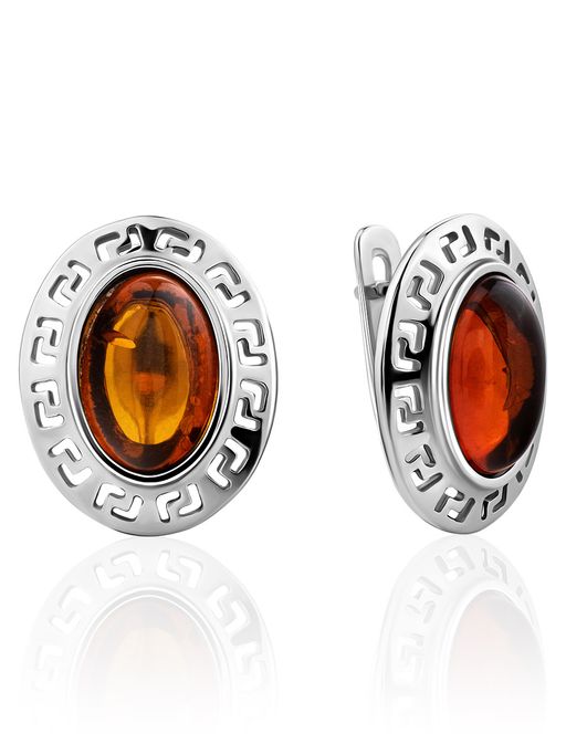 Небольшие овальные серьги из серебра с янтарными вставками Эллада