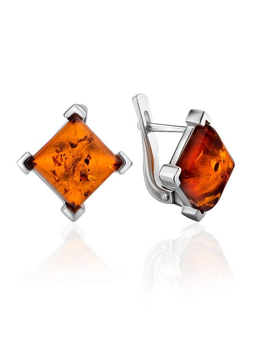Серьги из натурального коньячного янтаря в серебре Афина
