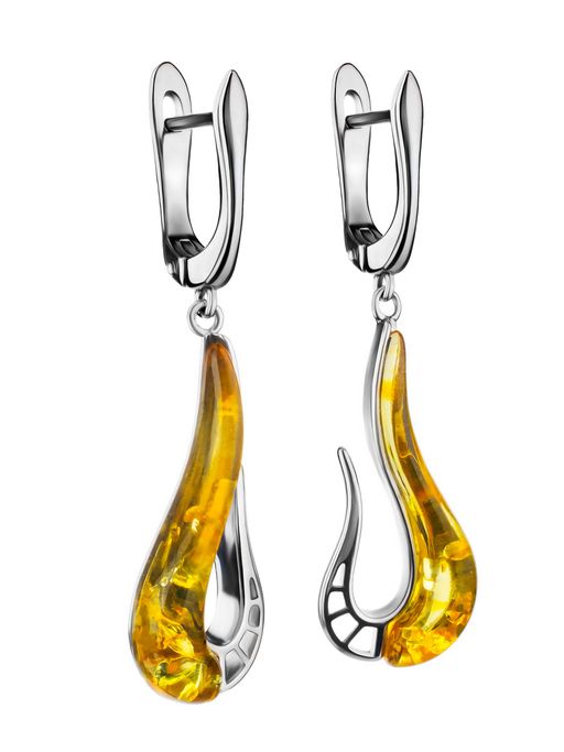 Необычные серьги из серебра и натурального лимонного янтаря Санрайз