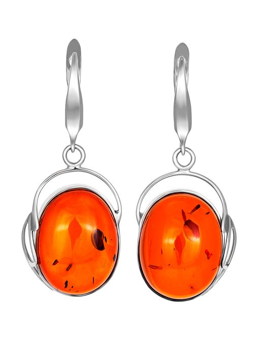 Изящные серьги из серебра с натуральным коньячным янтарём Риальто