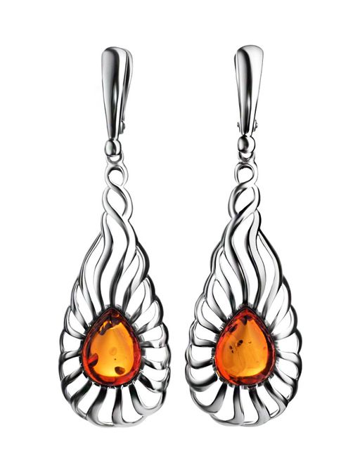 Красивые серьги из серебра с натуральным янтарём коньячного цвета Севилья