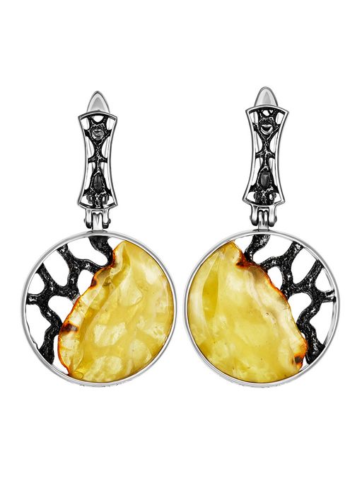 Элегантные ажурные серьги из серебра с натуральным балтийским янтарём Модерн