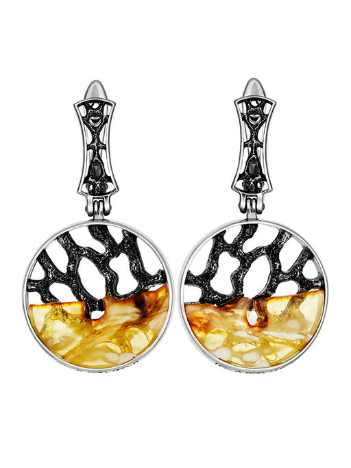 Элегантные круглые серьги с натуральным текстурным янтарём Модерн
