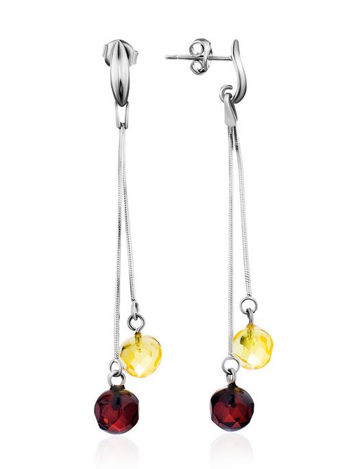 Серьги из янтаря Алмазный шар на цепочке с застежкой-пусетой