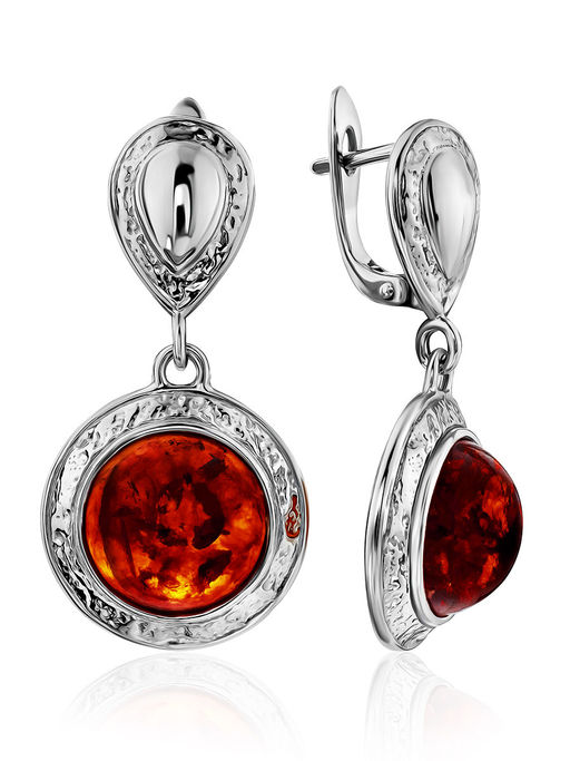 Роскошные серьги со вставками из вишнёвого янтаря Ампир