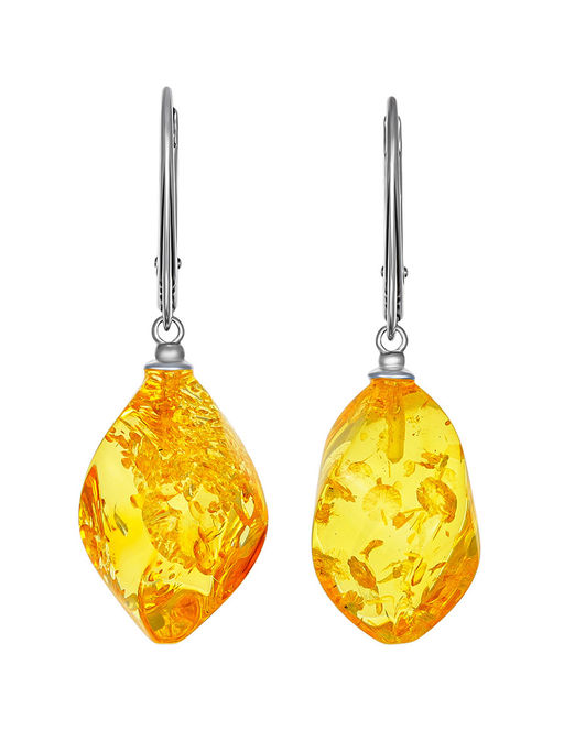 Серьги Алёнка из серебра и натурального янтаря лимонного цвета