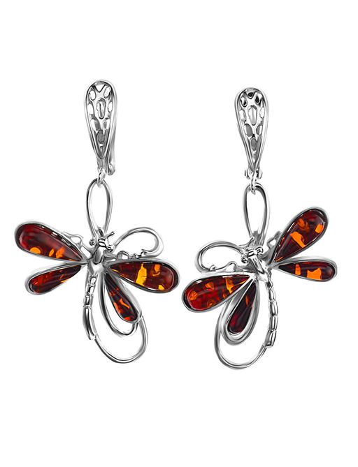 Нарядные эффектные серьги из натурального вишнёвого янтаря Стрекоза