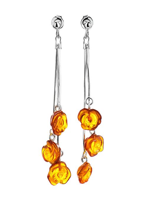 Очаровательные серьги из резного янтаря с замками-гвоздиками Розы коньячные