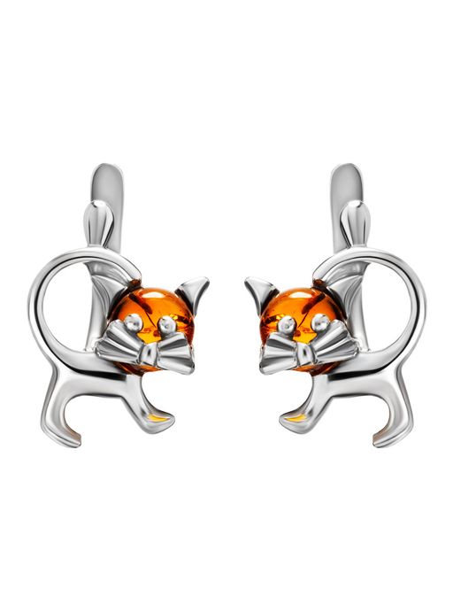Забавные серьги из натурального янтаря Чешир