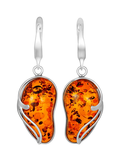Яркие эффектные серьги из натурального янтаря коньячного цвета Маньяна