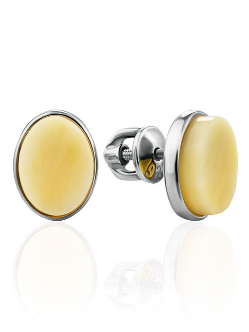 Лёгкие серьги-гвоздики Бенефис из молочного янтаря