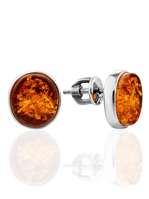 Небольшие серьги-гвоздики из коньячного янтаря Бенефис
