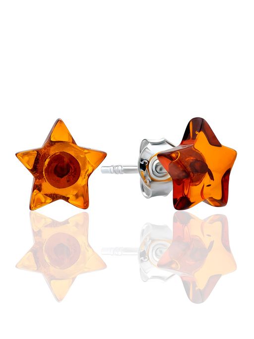 Очаровательные серьги-гвоздики из натурального цельного янтаря Звёздочки