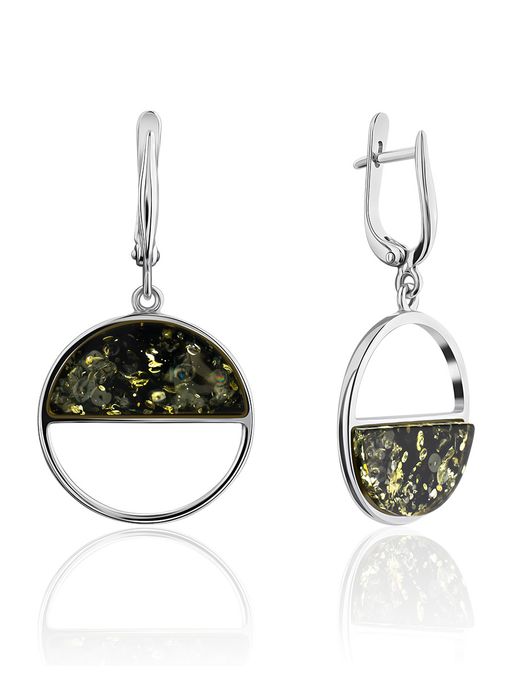Серьги Монако с янтарём тёмно-зелёного цвета