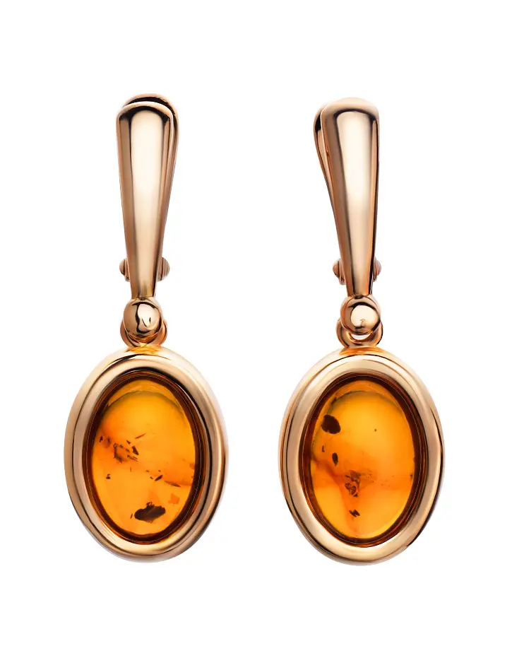 Серьги из позолоченного серебра и натурального цельного янтаря коньячного цвета Годжи, 810104164