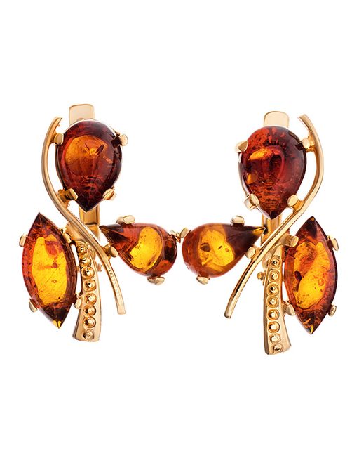 Эффектные серьги из серебра в позолоте, украшенные янтарём Магнолия, 810112135