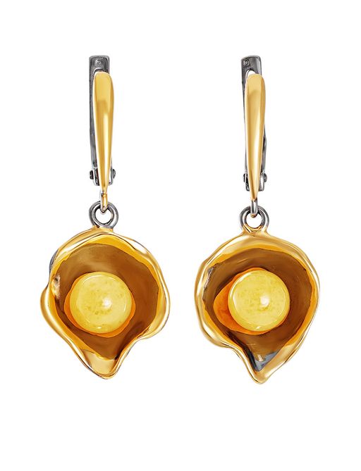 Необычные серьги из золочённого серебра и натурального янтаря медового цвета Турандот, 810110082
