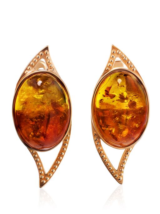 Нарядные серьги из позолоченного серебра и коньячного янтаря Прима