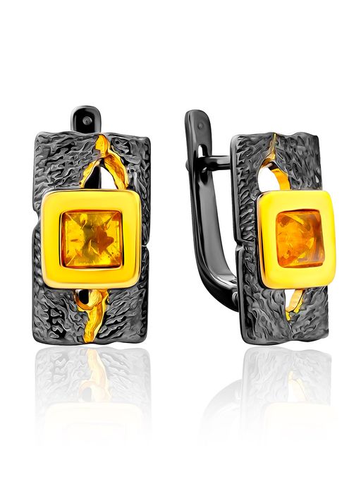 Небольшие серьги из текстурного чернёного серебра и янтаря Претория