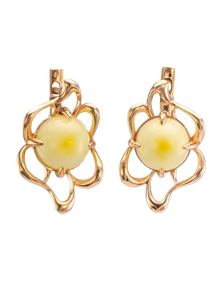 Серьги Юнона из позолоченного серебра и натурального молочного янтаря