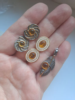 Небольшие изящные серьги Стаккатос янтарём золотистого оттенка