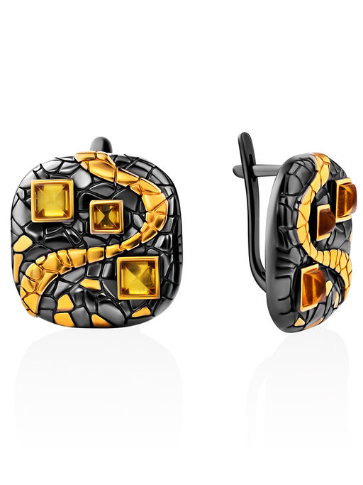 Чернёные серьги Донателла с натуральным янтарём золотистого цвета