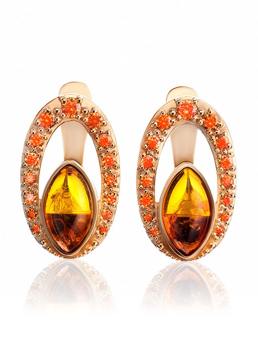 Сияющие серьги Ренессанс с коньячным янтарём и фианитами