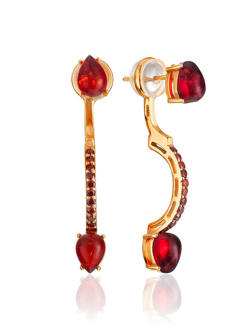 Яркие серьги Ренессанс с алым янтарём и фианитами
