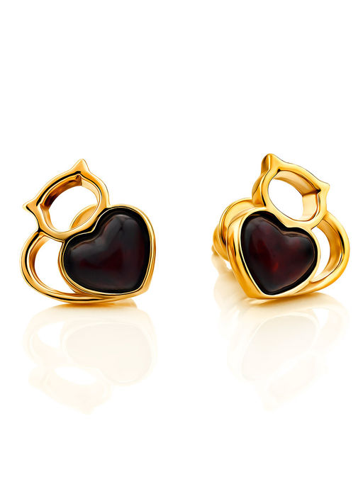 Небольшие лёгкие серьги-гвоздики из вишнёвого янтаря Лямурр