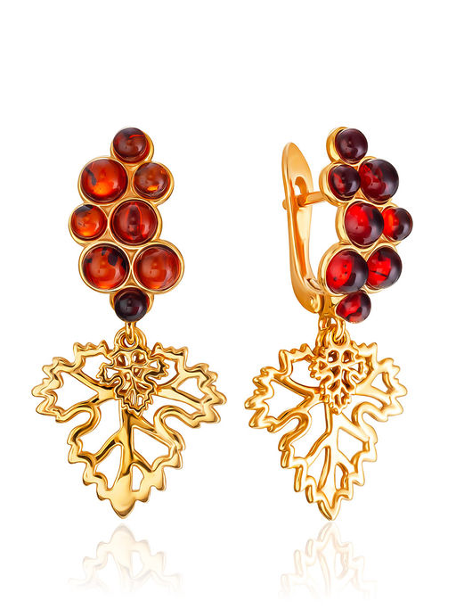 Яркие серьги с янтарём вишнёвого цвета Виноград