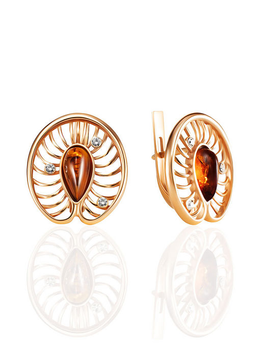 Позолоченные серьги с янтарём коньячного оттенка Амелия