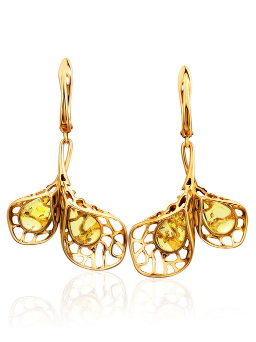 Необычные серьги из золоченного серебра с лимонным янтарём Венера