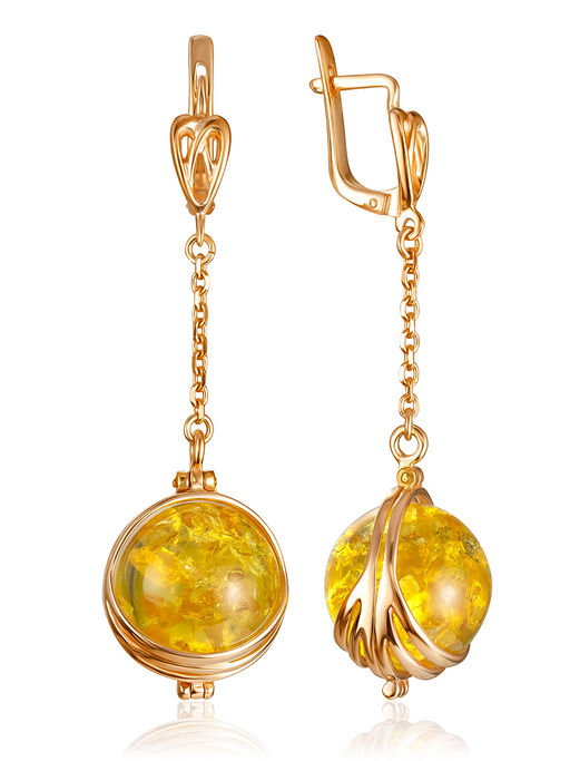 Позолоченные серьги-антистресс Сен Жермен с лимонным янтарём