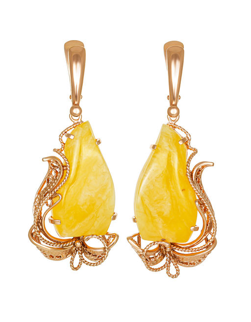 Изящные и утончённые серьги из натурального балтийского янтаря Филигрань