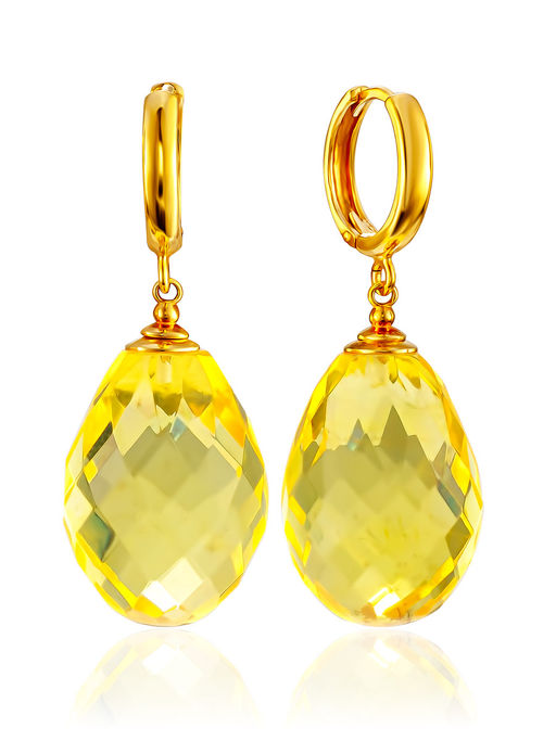 Серьги с объёмными подвесками из огранёного лимонного янтаря