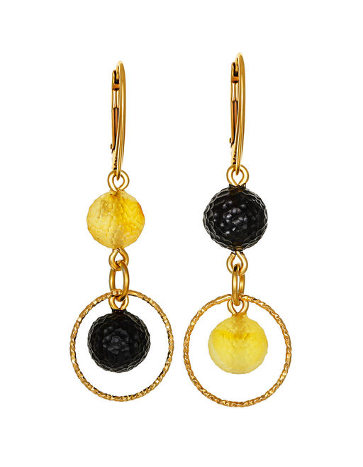 Аккуратные серьги с легкими кольцами и невесомыми янтарными сферами Марс