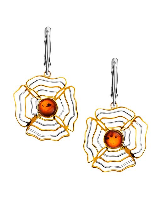 Нарядные серьги Адонис с натуральным коньячным янтарём