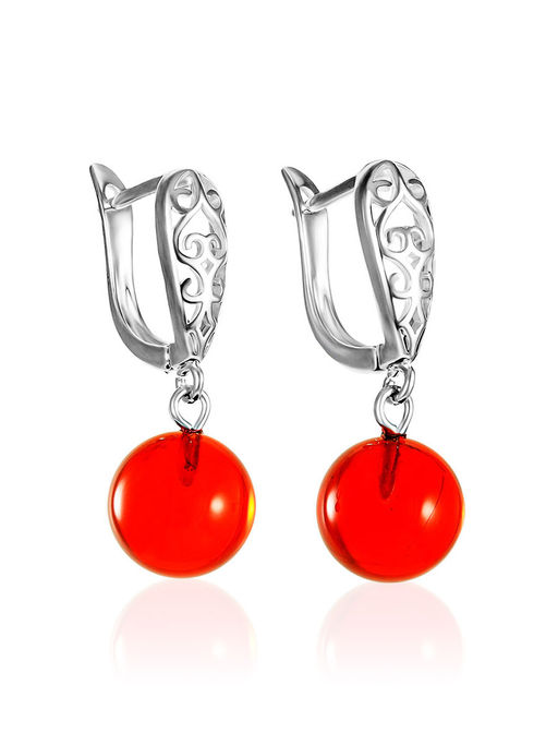 Яркие серьги с яркой янтарной вставкой алого цвета