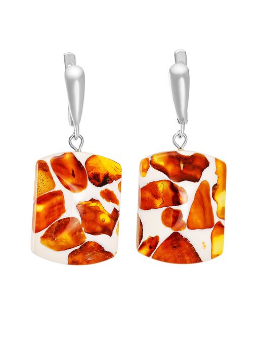 Пёстрые прямоугольные серьги с натуральным янтарём Далматин