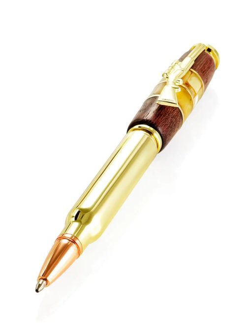 Дизайнерская авторучка с натуральным янтарём и деревом