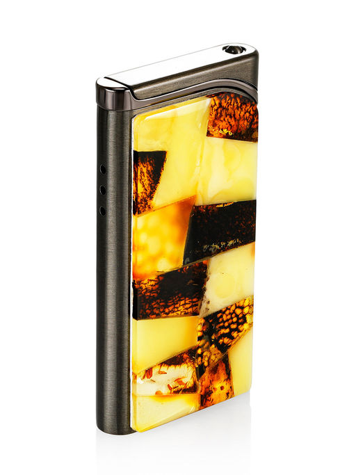 Стильная зажигалка в металлическом корпусе, украшенная янтарной мозаикой