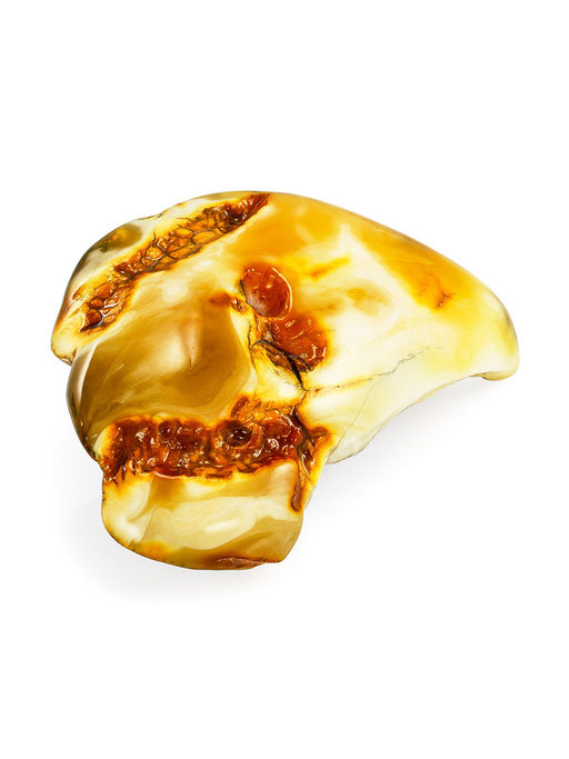 Плоский сувенирный кусочек натурального балтийского янтаря с пейзажной текстурой