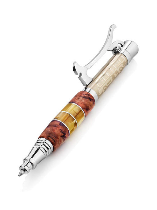 Необычная ручка, украшенная янтарём и деревом МЧС