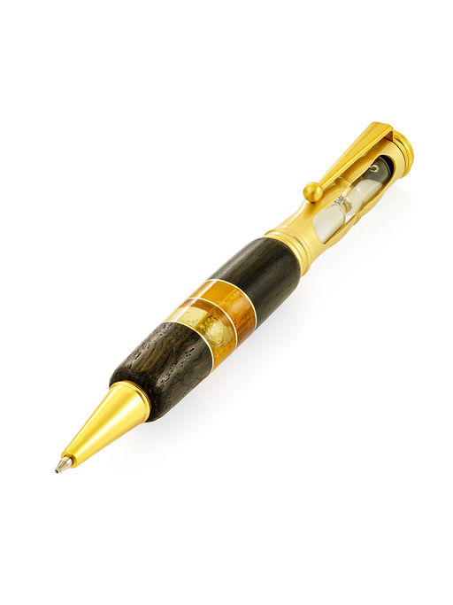 Оригинальная ручка с песочными часами, украшенная янтарём и деревом
