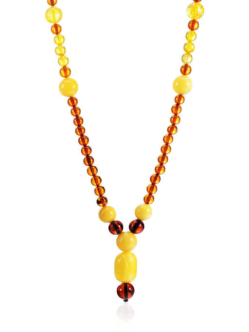 Бусы из натурального цельного янтаря разных оттенков Пекин