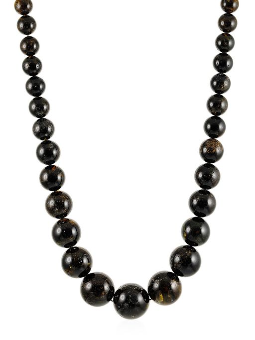 Бусы из натурального янтаря Метеорит тёмный полированный