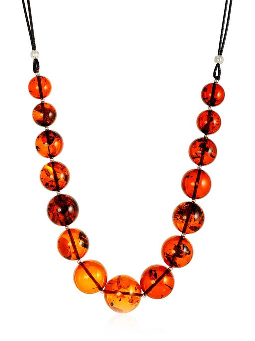 Стильное колье из натурального балтийского янтаря Шары на шнурке